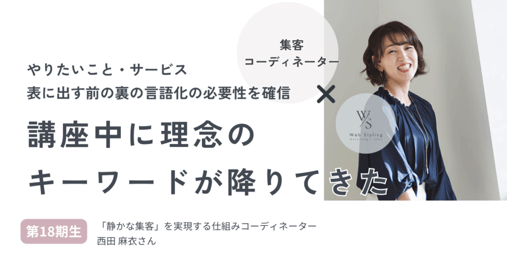 西田 麻衣さん「静かな集客」を実現する仕組みコーディネーター ①Webスタイリング講座を受けようと思った理由 LPやLPを軸とするような仕組みが好きで構築してきたけど、売り手よがりな集客手法なのかもしれない…という後ろめたさはずっとありました。そう... -