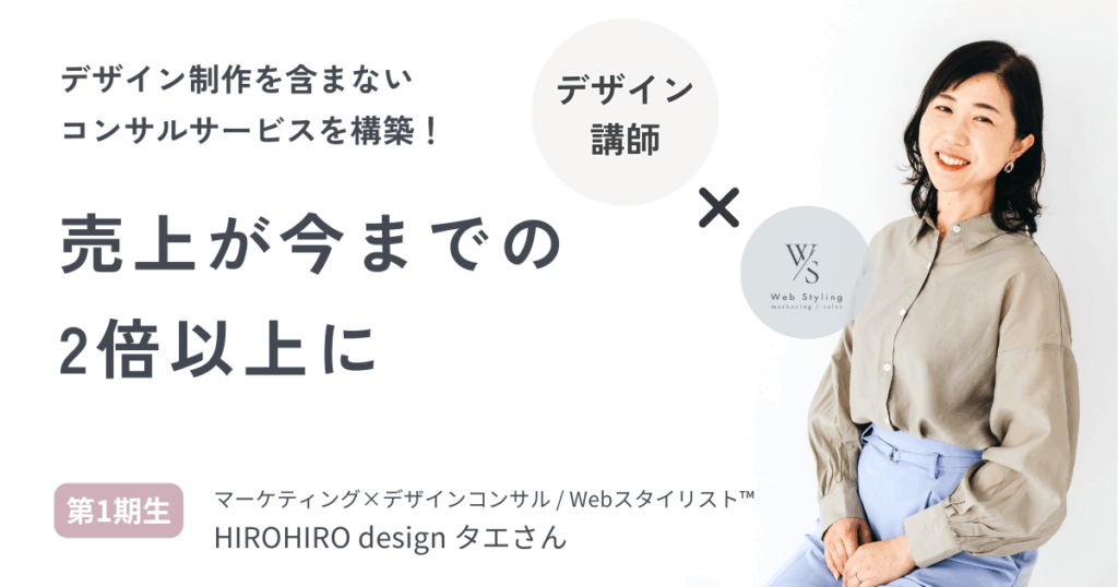 マーケティング×デザインコンサル / Webスタイリスト™︎ HIROHIRO design タエさん 受講前の私デザイナーとして起業してから2年が経過していました。目の前のお客様と向かい合いながらデザインの制作のご依頼は途切れることは無くなっていましたが、①自分の... -