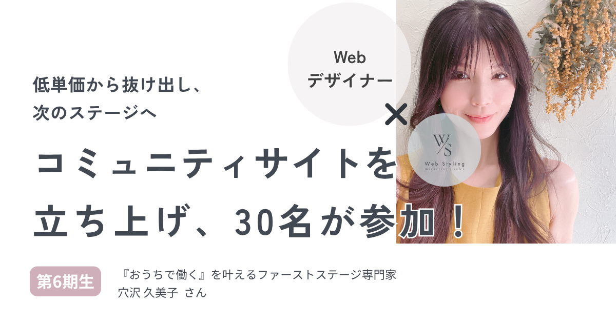 定期的に再受講でき、受講のたびに「今の自分だからこその課題」が見つかり、サービスの見直しややるべきことの割り出し、Webビジネスでのマインドセットできる環境のおかげで、フリーランスビジネスステップの実践を重ねることで、夢だったコミュニティサイトを立ち上げることができました。今では30名の方にコミュニティを活用いただけています!